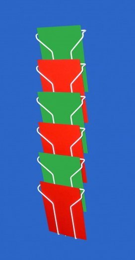 Stojaki na broszury do samodzielnego postawienia lub zawieszenia na ścianie. Metal, kolor biały. Format 4xA4. Miejsce na naklejkę z logo. Całkowite wymiary stojaka w mm (wys. x szer. x gł.) 500 x 230 x 260. Wymiary kieszeni w mm (wys. x szer. x gł.) 287 x 223 x 26 mm.