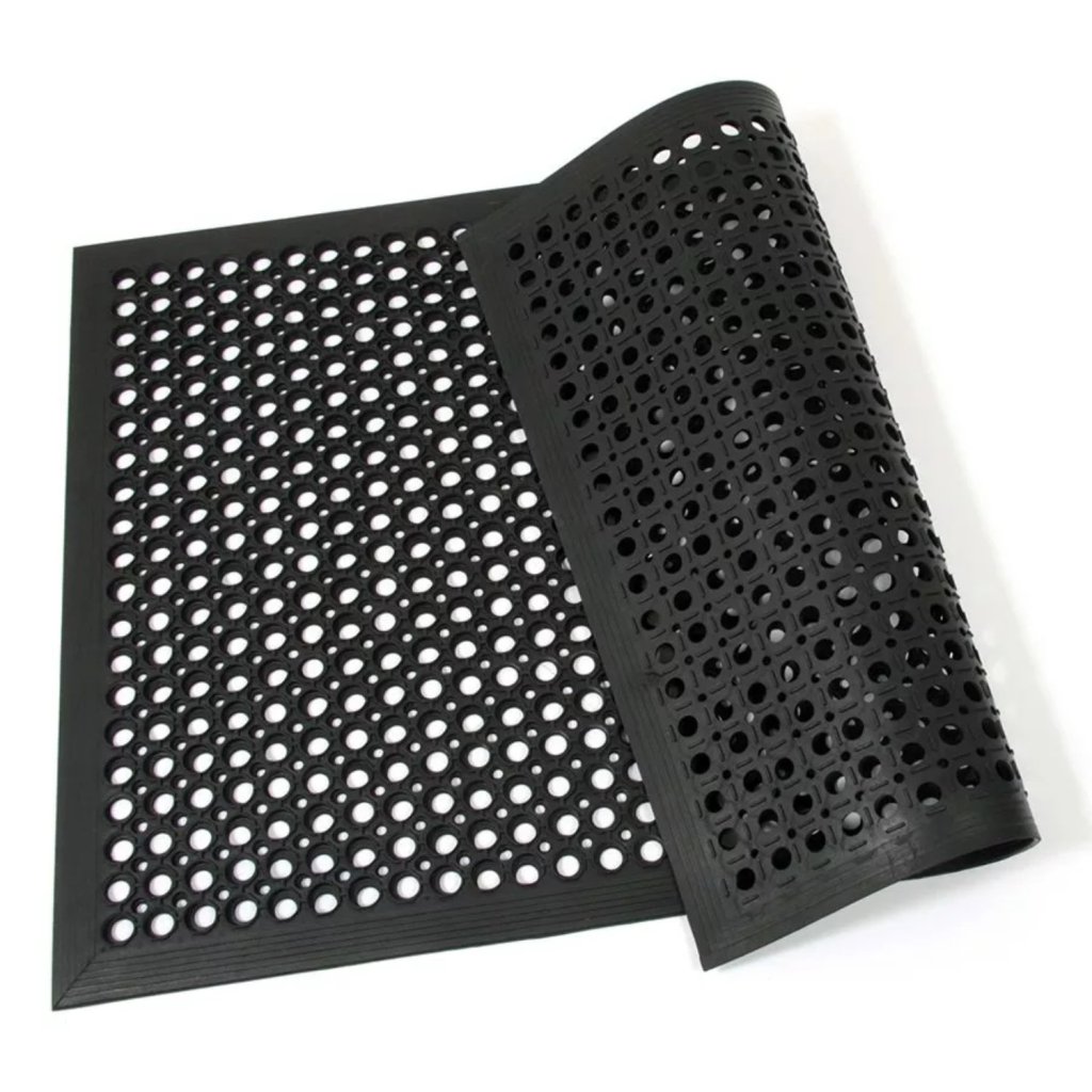 - Dziury w macie zapewniają odprowadzanie płynów i opadanie brudu powstałego podczas produkcji