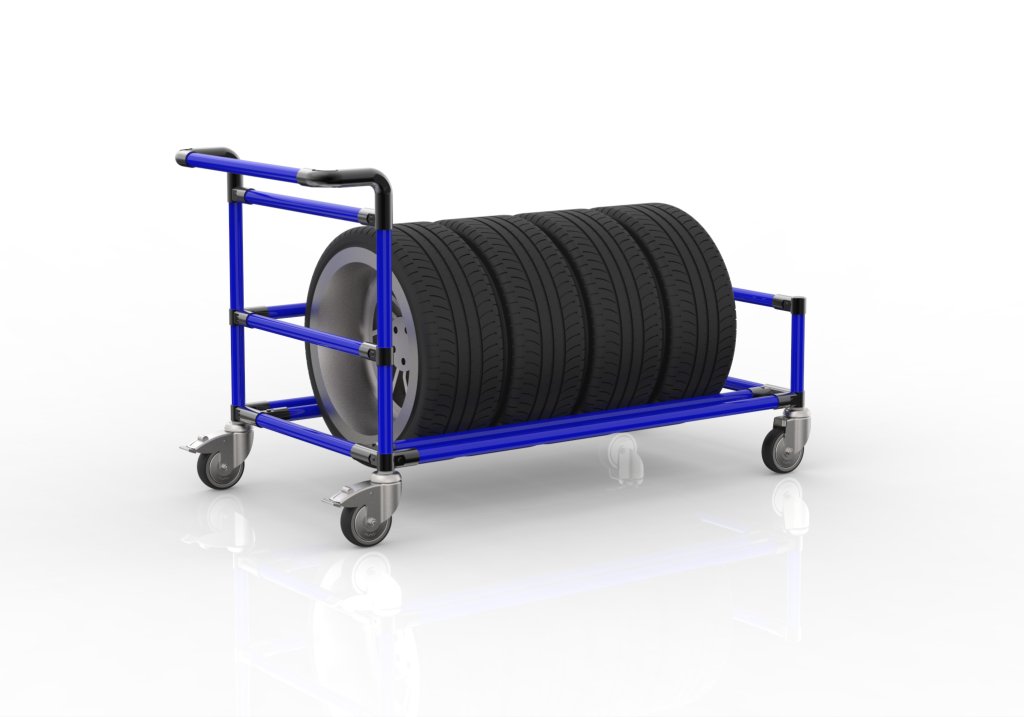 Wózek na opony wykonany z systemu modułów rurkowych, z praktycznym uchwytem. Idealny do opon o rozmiarach 16" - 20". 2 kółka pełny opis i parametry