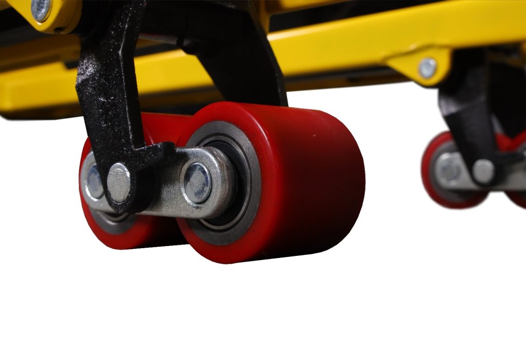 Platforma nożycowa wyposażona w nożną pompę hydrauliczną o udźwigu 150 kg i maksymalnej wysokości podnoszenia 720 mm.
