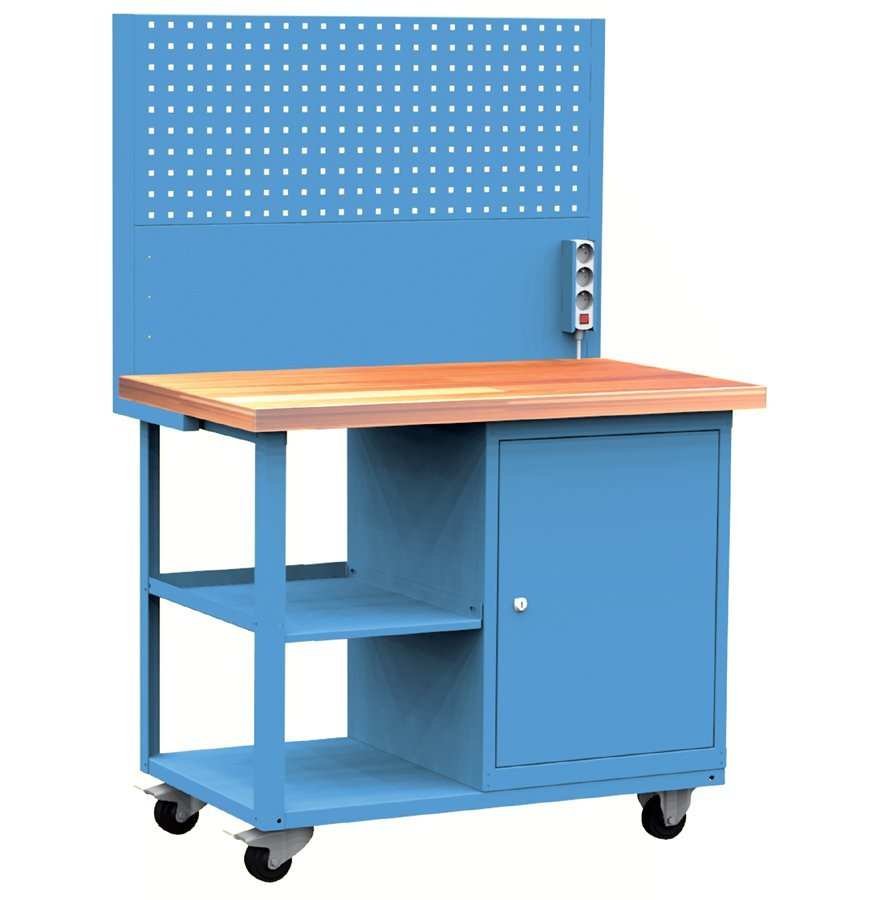 Wózek platformowy warsztatowy na narzędzia z panelem perforowanym, szerokość 1000, wysokość 1502, głębokość 630 mm. Nośność korpusu 200 kg, pojemność półki 30 kg.