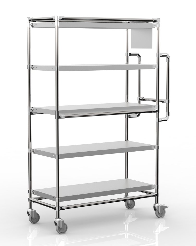 Wózek zawiera dwa kółka skrętne z hamulcem i dwa kółka skrętne bez hamulca o średnicy 100 mm. Zaletą tych kół są niskie opory toczenia i dzięki temu wygodne prowadzenie. Istnieje możliwość zmiany konfiguracji kół w zależności od wymagań klienta. Wózek wyposażony jest także w ergonomiczny uchwyt zapewniający łatwiejszą i wygodniejszą obsługę. Nośność całkowita 300 kg, nośność na półce 60 kg. Wymiary 1765 x 1066 x 482 mm.
