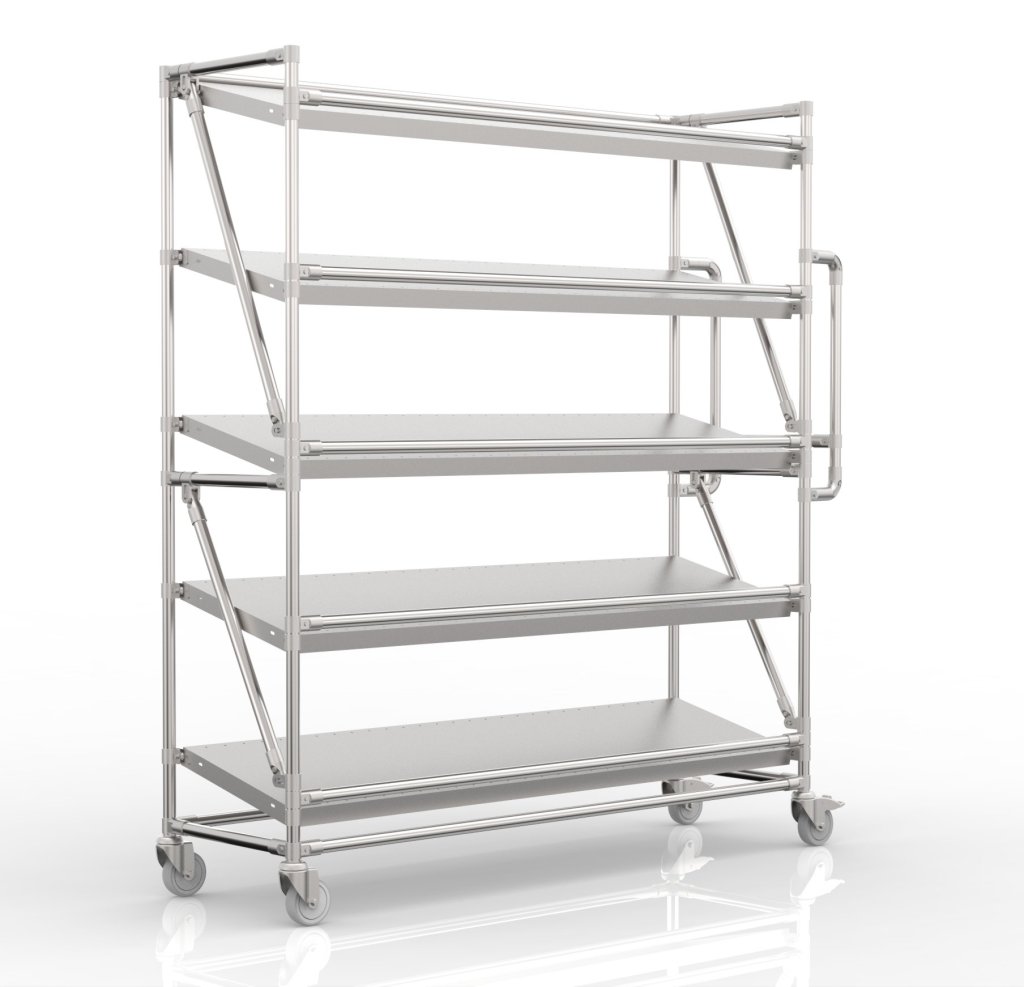 Wózek zawiera dwa kółka skrętne z hamulcem i dwa kółka skrętne bez hamulca o średnicy 100 mm. Zaletą tych kół są niskie opory toczenia i dzięki temu wygodne prowadzenie. Istnieje możliwość zmiany konfiguracji kół w zależności od wymagań klienta. Wózek wyposażony jest także w ergonomiczny uchwyt zapewniający łatwiejszą i wygodniejszą obsługę. Nośność całkowita 300 kg, nośność na półce 60 kg. Wymiary 1782 x 1566 x 472 mm.