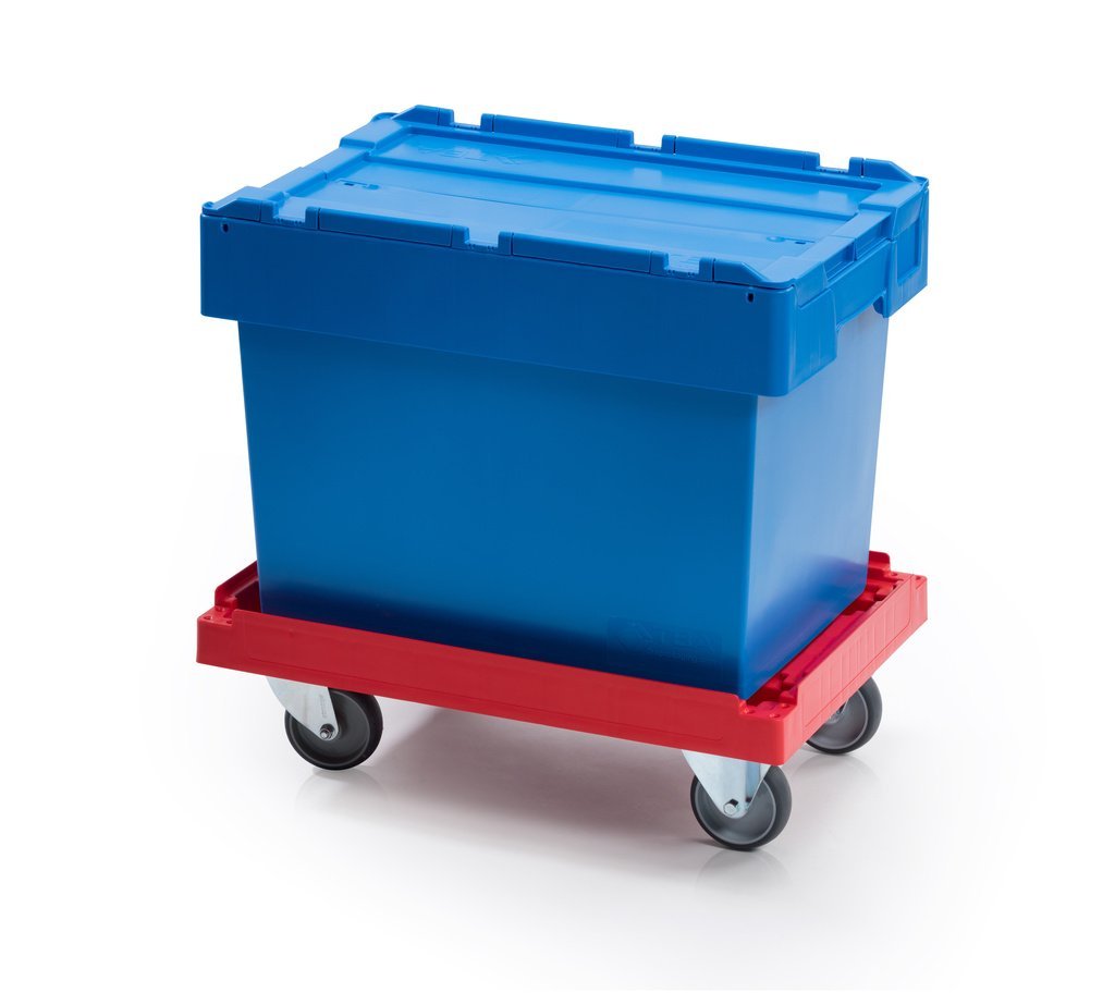 Do transportu palet i skrzynek. Dwa koła stałe i dwa skrętne z hamulcami. Zwiększona powierzchnia załadunkowa pozwala na bezspieczny przewóz ładunków wielkogabarytowych . Powierzchnia załadunkowa w mm (wys. x szer. x gł.) 1000 x 800 x 600. Nośność 300 kg, średnica koła 125 mm.