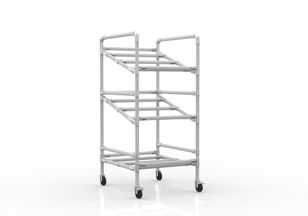 Aplikacja niestandardowa, wszystkie wymiary można dostosować do potrzeb klienta. Rurki dostępne są w kilku kolorach oraz w wariancie ESD lub ze stali nierdzewnej (odpowiednie dla gastronomii).