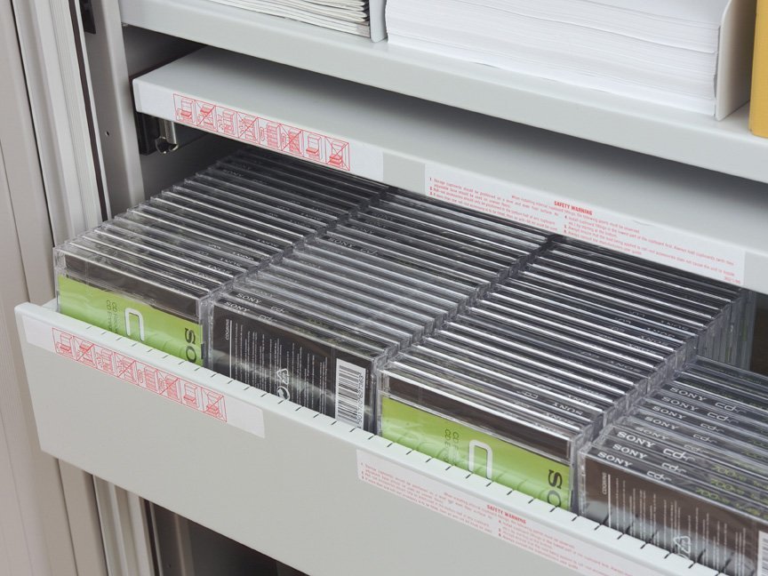 Półka prosta z możliwością wykorzystania na segregatory wiszące A4 z boczną etykietą. Pasuje tylko do szaf roletowych Bisley Essentials typu YETB10XX (szerokość 1000 mm), szaf dwudrzwiowych Bisley Essentials typu YECB09XX (szerokość 914 mm) i zdemontowanych szaf dwudrzwiowych typu KC.